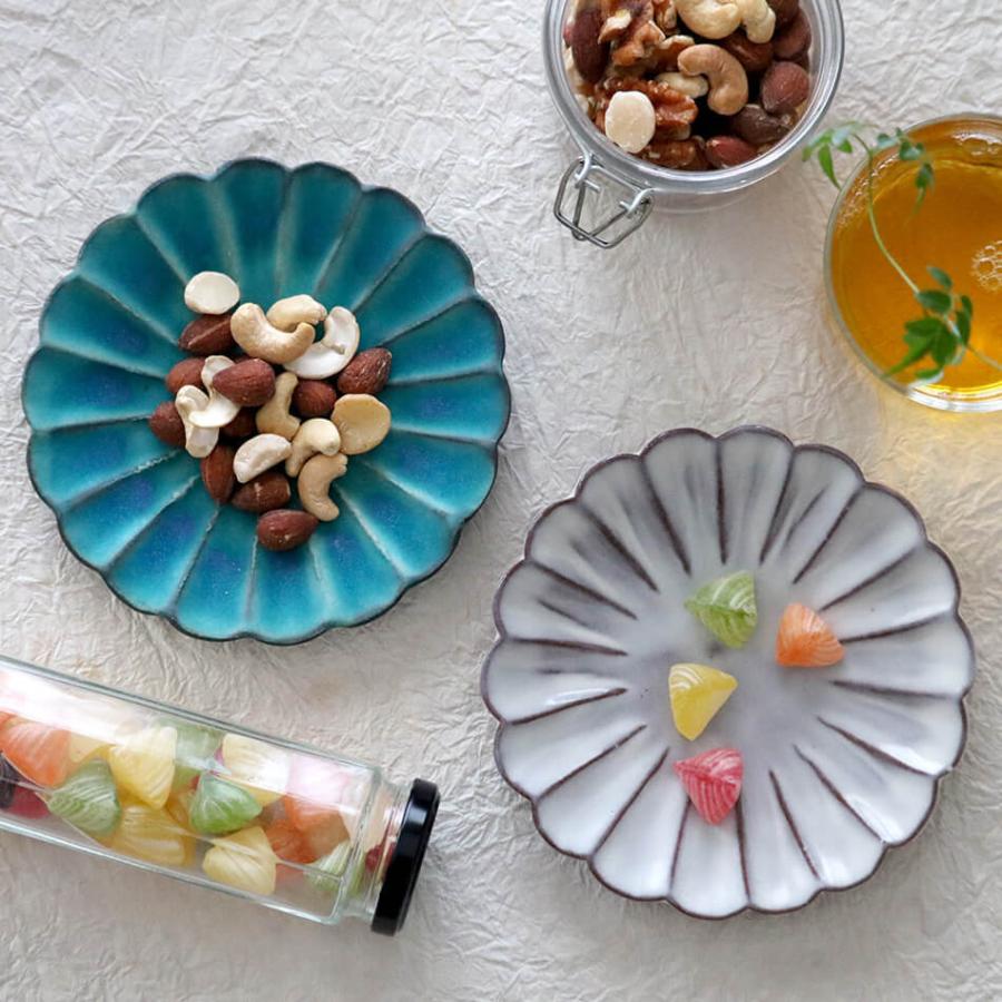 無地の中にある釉薬の濃淡に個性が出て、同じようで同じようで同じでない当たる光が変われば色も違って見えたり、一枚の皿の中に様々な表情を見せる色合い・・・